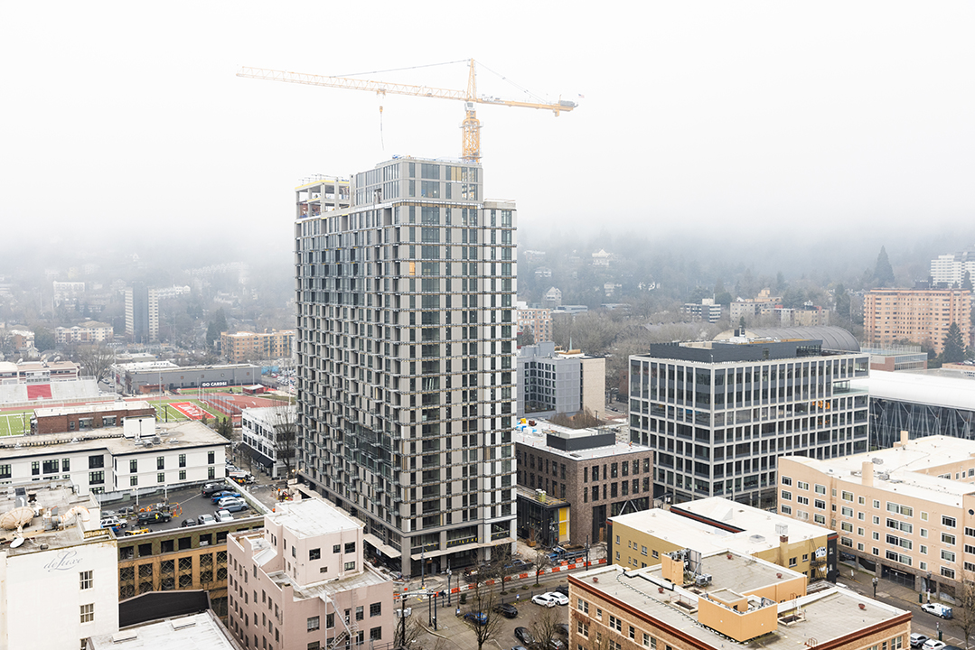 The residential tower spans 322,000 square feet and will offer 341 housing units, helping to meet Portland's increasing demand for sustainable housing. Adjacent to the tower, the 48,000-square-foot office building embodies modern design and material innovation. The project is supported by four floors of below-grade parking and is targeting LEED Silver certification, demonstrating the project’s commitment to environmental stewardship.