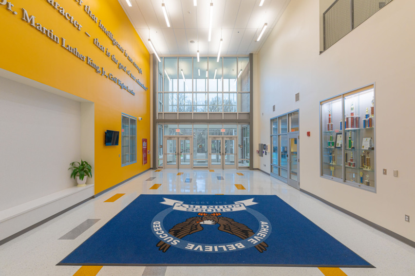 The new facility is a 3-section school comprised of three stories and approximately 95,000 total sq. ft. It offers amenities such as technology & media centers, dedicated art and music spaces, wholeness/health suites, gender-neutral restrooms, and collaboration spaces for students and staff.