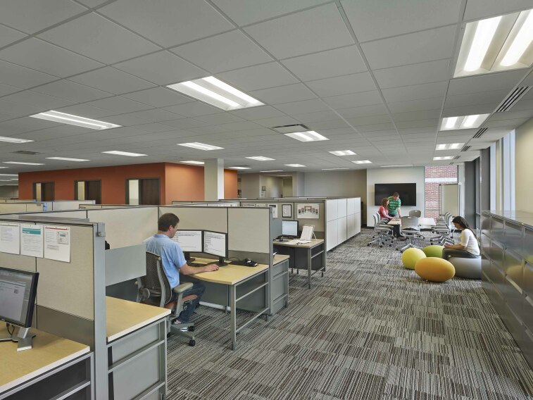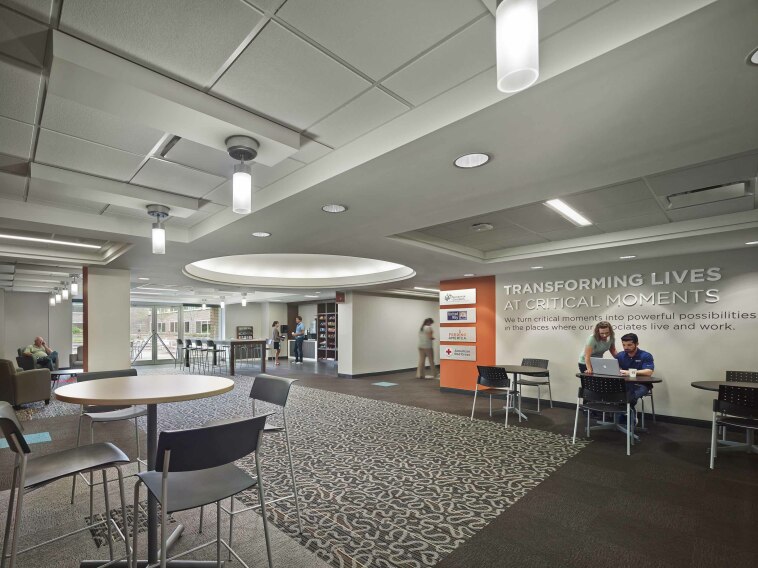 Turner provided preconstruction and construction services for a 240,000 sq. ft. renovation of Nationwide’s headquarters location. The project included major renovations to all occupied portions of the existing building. The scope included complete demolition and remodel of occupied spaces including new ceilings, flooring, paint, and partitioning. A new main entrance, a conference center, and executive suites were added to Building B. An extensive renovation of the existing kitchen/cafeteria was also included in the scope. Mechanical work included the complete replacement of the HVAC systems in buildings A and C to a new VAV-style HVAC system. This included replacement of the air handling units serving these buildings. Additional improvements included modifying interior and exterior lighting, replacing the fire system and network cabling infrastructure, and exterior landscape improvements. The project was completed in three phases.