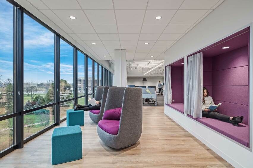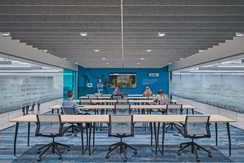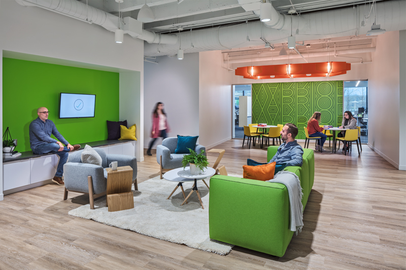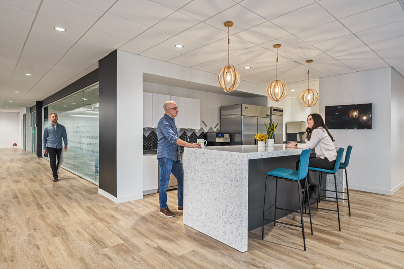 Multi-phased interior renovation of an existing office building that spans four floors and 200,000 sq. ft.. The project includes demolition of the existing space along with construction of the new space featuring high end finishes, kitchen areas, office spaces, conference rooms and breakout areas. A challenge on this project was the leveling of floors. The concrete floors were out of level by as much as 2 ¾” on the upper floors. The team had to correct this doing one of two things: pouring self-leveling thin set and leveling specific areas on each floor, or by casting concrete “curbs” to level the floor at specific locations where glass office fronts required strict levelness tolerances.