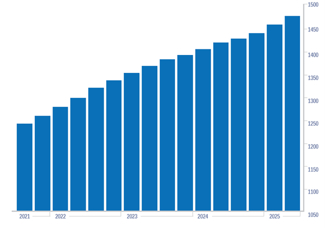 Turner Construction Company announced that the Second Quarter 2025 Turner Building Cost Index—which measures costs in the non-residential building construction market in the United States—had increased to the value of 1476. This represents a 1.17% quarterly increase from the First Quarter 2025 and a 3.82% yearly increase from the Second Quarter 2024.