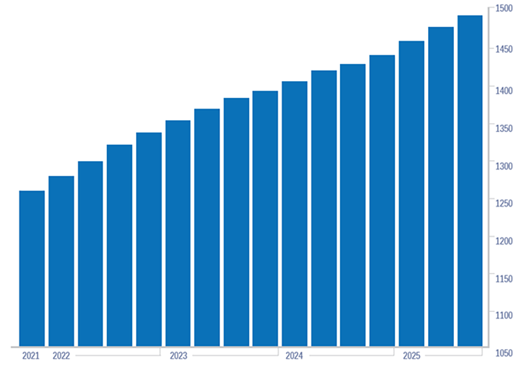 Turner Construction Company announced that the Third Quarter 2025 Turner Building Cost Index—which measures costs in the non-residential building construction market in the United States—had increased to the value of 1493. This represents a 1.15% quarterly increase from the Second Quarter 2025 and a 4.19% yearly increase from the Third Quarter 2024.