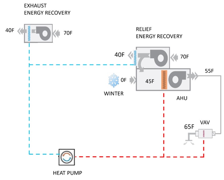 This “exhaust-source heat pump” is sized for approximately 20% of the building’s peak heating load but reduces emissions by nearly 90% because buildings operate at part-load conditions for most of the year. By targeting the majority of operating hours rather than designing for the rare peak, the team maximized the potential for carbon emissions savings. This high-performance strategic approach avoids unnecessary costs associated with overdesigning for peak conditions, delivering significant environmental and financial returns.