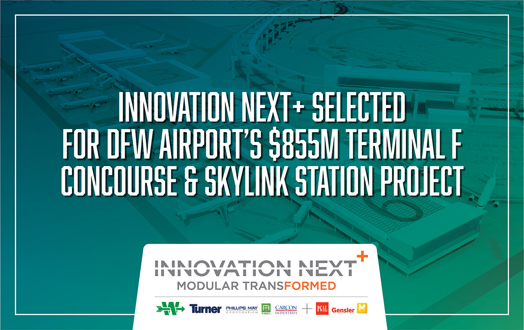 Thrilled to announce that the Innovation Next+ design-build team has been selected for the Dallas Fort Worth International Airport (DFW) Terminal F Concourse and Skylink Station Project. The $855 million project will provide a new concourse building and associated Skylink Station infrastructure on the Terminal F site. This new double-loaded (aircraft parking on both sides) concourse building is anticipated to measure nearly 400,000 square feet.