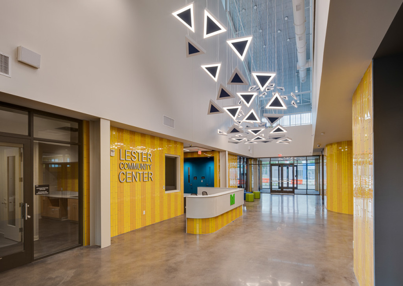Spanning nearly 30,000 square feet, the reimagined Lester Community Center is designed to serve all ages with its blend of recreational, educational, and social offerings. Inside, visitors will find a gymnasium that seats 500 spectators, perfect for local sports tournaments and school events, as well as a weight room and fitness center to support active lifestyles.
