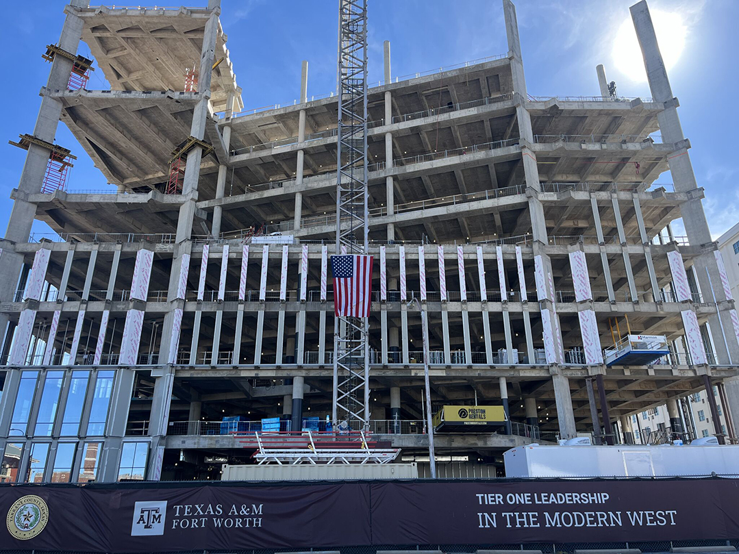 Turner Construction Company, in collaboration with joint venture partners CARCON Industries and Source Building Group, celebrated the topping-out of the Law and Education Building for Texas A&M-Fort Worth. The topping-out marks the completion of vertical construction. Click here to see more from the ceremony.