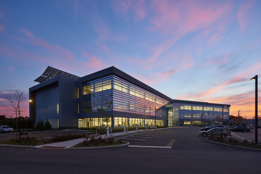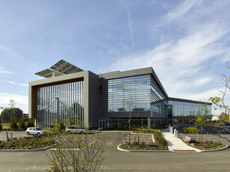Turner provided preconstruction and construction management services for NRG Energy’s new headquarters, a three-story, 130,000 sq. ft. office building located in Princeton, NJ. The exterior wall is a key architectural feature that consists of curtainwall surrounded by metal panels. The curtainwall is three stories with unique mullion caps and profiles along with several types of insulated glazing units including vision glass, spandrel glass and wood-veneer glass. The glazing units all provide the required R and U values to meet optimal thermal and energy performance. This state of the art building is also focused on energy efficiencies and consists of many green features such as solar arrays, car charging stations, a green roof and wind turbines, and zinc metal panels that provide sustainable value and meet LEED requirements.