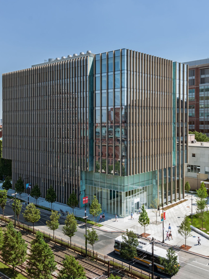 This 170,000 sq. ft. building on the Boston University campus is home to the Center for Systems Neuroscience, the Biological Design Center, the Center for Sensory Communication and Neuroengineering Technology and the Cognitive Neuroimaging Center. The building houses lab space, collaborative space, seminar and large-scale discussion rooms, as well as support spaces for neuroimaging techniques, testing rooms for behavioral studies and research.