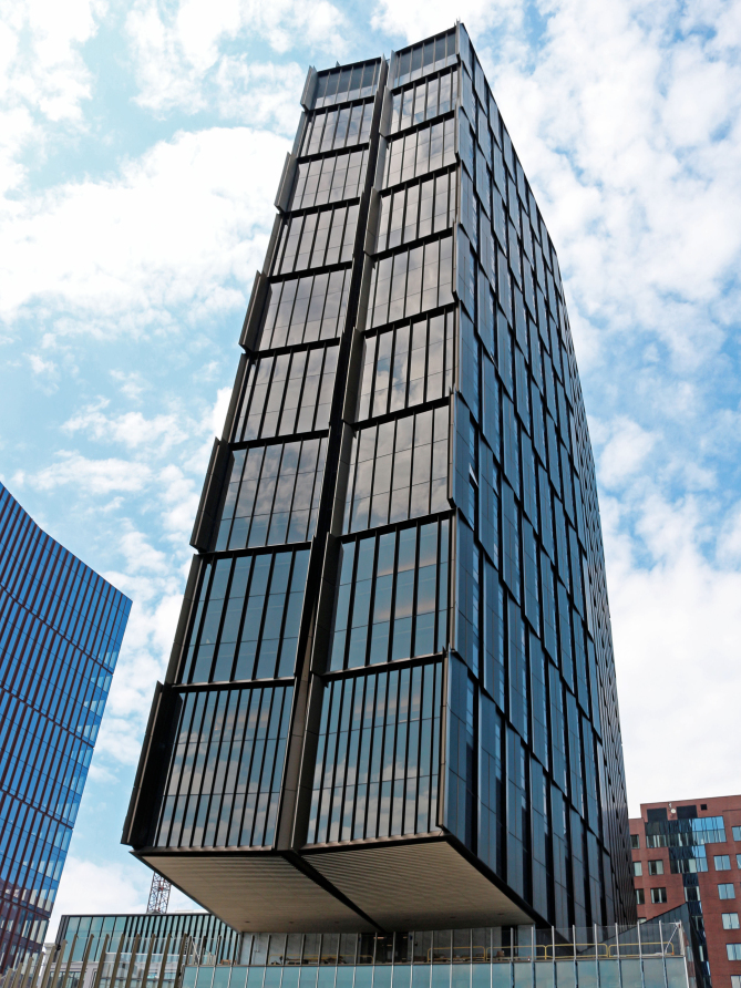 From the foundation to Level 6, the structure is steel encased in concrete; beyond Level 6, the structure is cast-in-place concrete, with a 45’ cantilever on the south elevation. The new portion of the façade is a mix of pre-fabricated mega panels and curtain wall. The existing building’s brick façade was preserved and restored. This new tower is the tallest building in Cambridge. This building received LEED Gold certification.