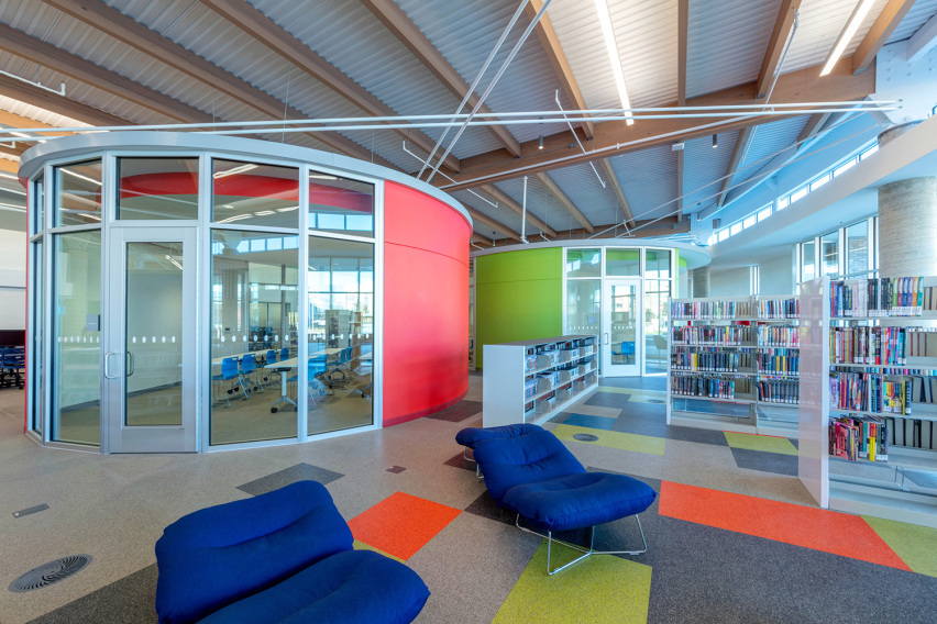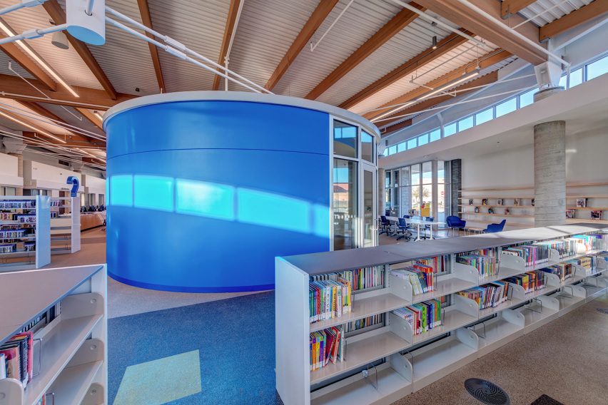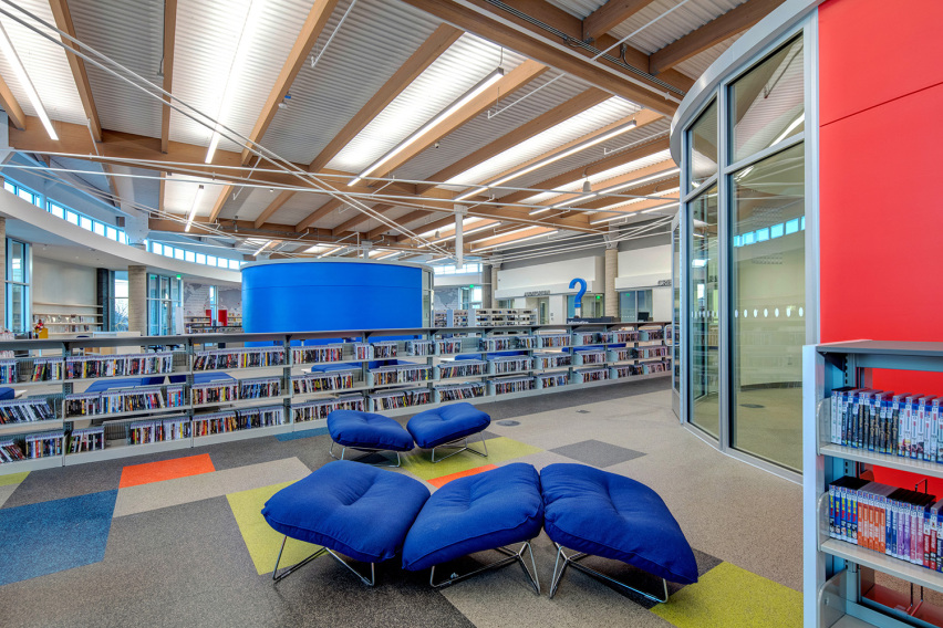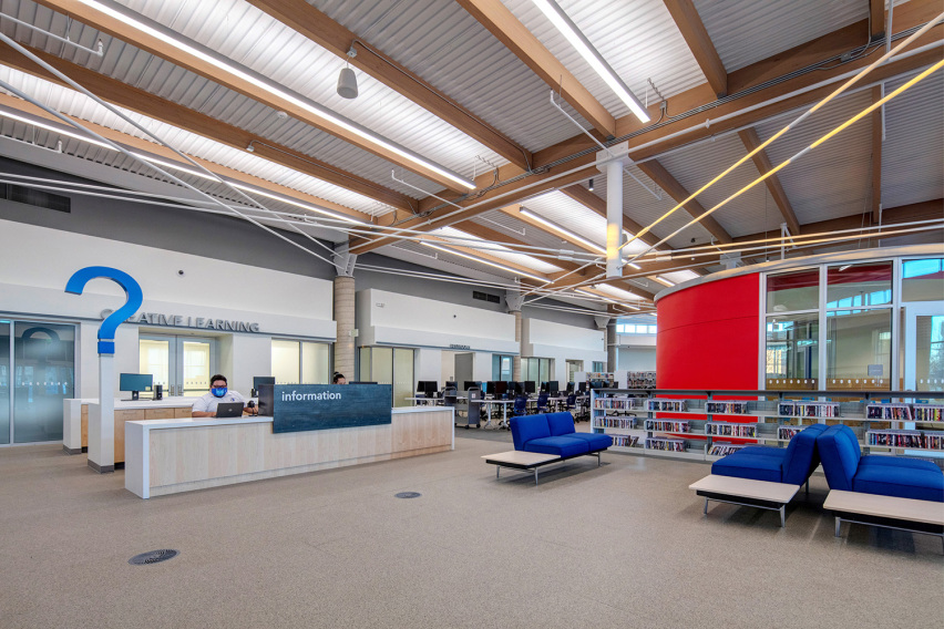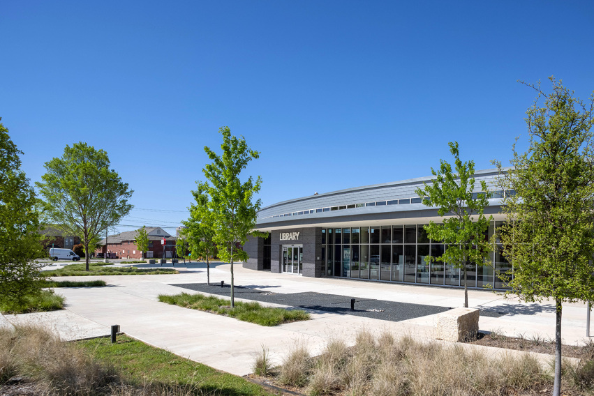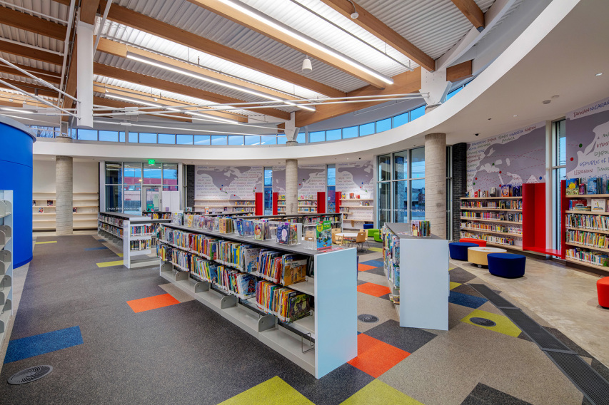 Within this neighborhood that embraces cultural diversity, the new branch library offers a welcoming landscape design with thoughtful programming to provide opportunities for area residents to gather and an ideal location for community events. The library also includes a children’s play space with a climbing structure and an amenity that community members requested during planning sessions – children are the #1 priority, with the elementary and middle school directly across the street.