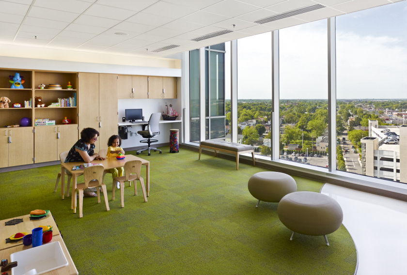 Turner, in association with Smoot Construction Company, was selected to provide services for the Nationwide Children's Replacement Hospital. The 12-story replacement hospital adds approximately 750,000 sq. ft. to the existing two-million square foot main hospital, and includes a basement level, mechanical penthouse, and heliport atop the 12-story structure. The total estimated patient capacity has expanded to 302-inpatient bed spaces. The Patient Tower includes: - private patient rooms with state-of-the-art patient care technology and expanded space to accommodate family care-givers - a Hematology/Oncology/Blood and Marrow Transplant unit with 36 inpatient beds, and 15 infusion beds; a new neurodiagnostics center to accommodate 48 beds with EEG, and a floor of 30 beds dedicated to pediatric intensive care patients with a second intensive care unit of 20 beds dedicated to heart and transplant care - an emergency department that increases support for Ohio's first Level 1 Pediatric Trauma Center. The new department also includes family support services and rooms dedicated to the assessment of alleged child abuse trauma, and dental, eye, and orthopedic emergencies - dining spaces and family lounges on each floor, and age-appropriate playroom/activity areas throughout the hospital - an inviting magic forest with large basswood animal sculptures and trees, a full-size diorama of a sound enhanced aviary, and a performance/theater space with advanced audio-visual equipment and wheelchair/bed accessibility - 6 acres dedicated to an outdoor park and green space area.