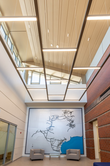 The Confidential Transmission Operations Center is an 80,000 sq. ft. mission-critical facility designed to monitor, control, and support transmission operations. The facility is divided into three primary areas: Area A houses administrative offices and a designated quarantine space; Area B contains TDC arenas, staff support areas, and a second-floor observation level for visitors, along with sequestration space for emergencies; and Area C, located at the rear, accommodates computer rooms as well as the telecom, electrical, and mechanical infrastructure for the entire center, including EMP-protected equipment.