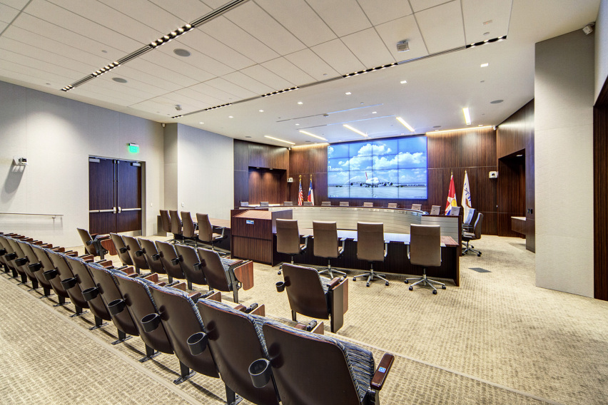 The new administration building for Dallas Fort Worth International Airport was designed to consolidate all of the administration departments under one building. The three-story, 150,000 sq. ft., tilt-wall, and glass headquarters building was designed as one of the initial anchor tenants as part of the DFW Southgate development.