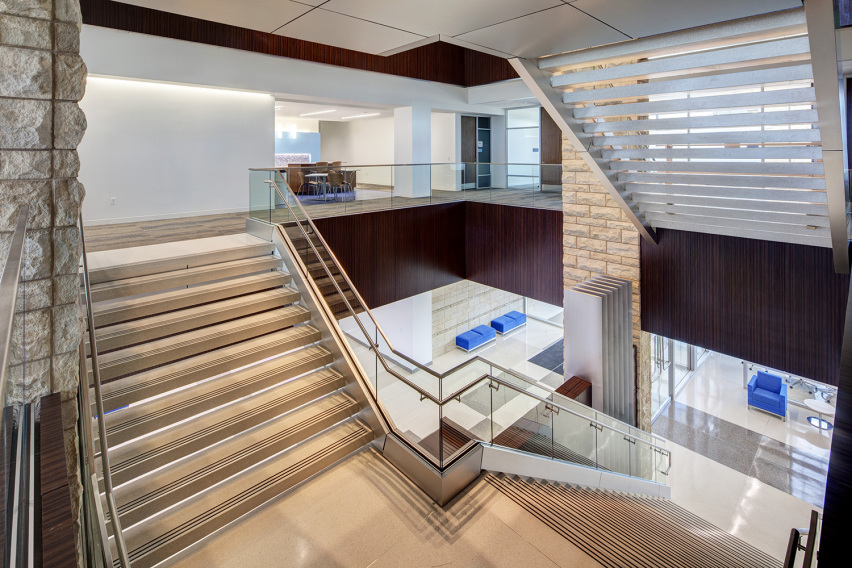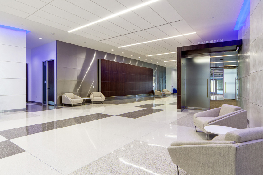 The office building features an expanded board room that can be configured as a multi-purpose training room. The site also included a three-story parking garage with 520 spaces. This project achieved LEED Silver certification from the USGBC.