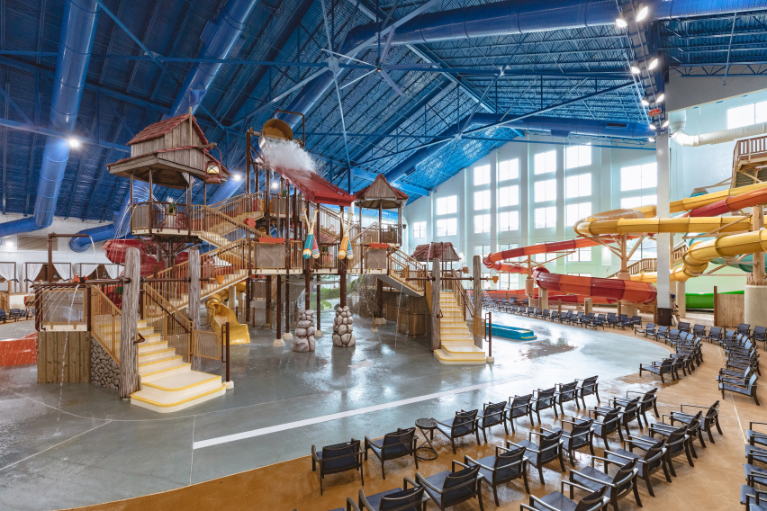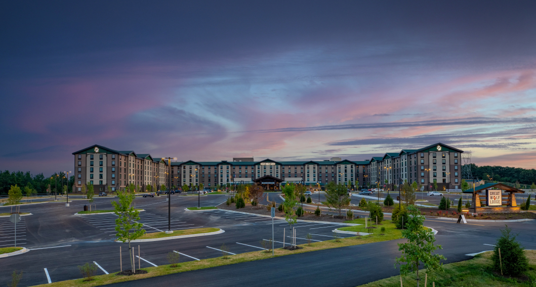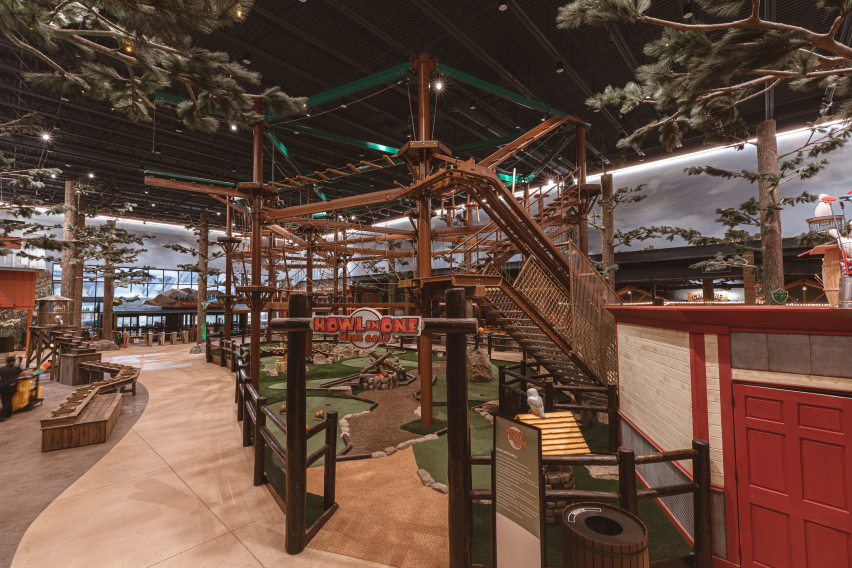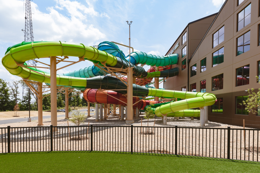 The project scope included multiple restaurants, a lobby with an audio/visual show with special effects, arcades, a bowling alley, a mirror maze, an indoor climbing area, 22 waterslides, a wave pool, a lazy river, and an outdoor pool. Even as Great Wolf Lodge’s largest location, the resort was completed one month ahead of schedule.