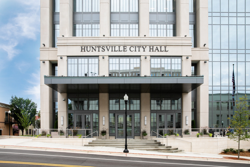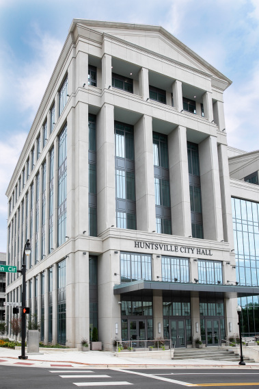 The seven-story, 175,000-sq. ft. Huntsville City Hall, opened in 2024, supports 365 city employees and serves as a central hub for municipal operations and public engagement.