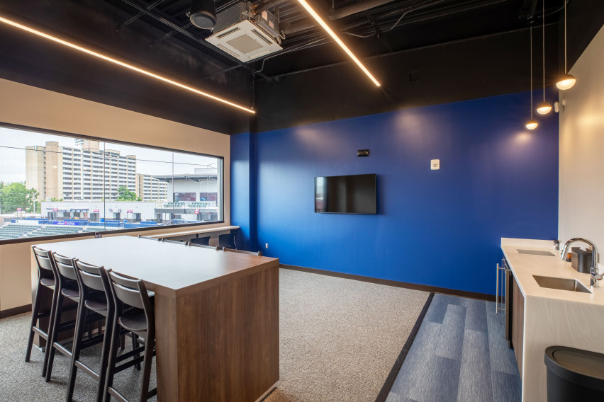 The stadium features 8 private suites, a club-level kitchen and bar, 4 concession stands, and 2 outdoor bars. It also includes an elevated picnic area and seating for 3,800 fans, as well as a club and meeting space that accommodates up to 320 people.