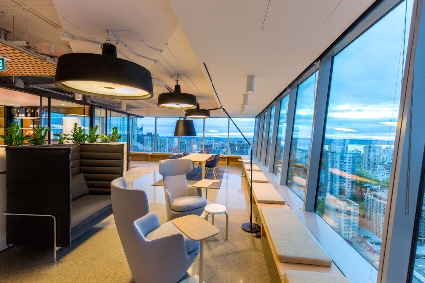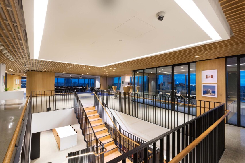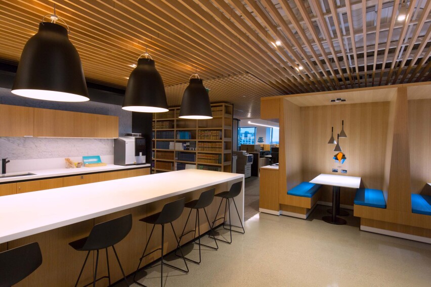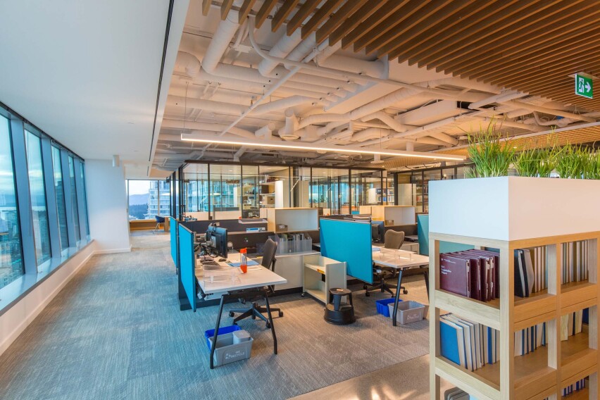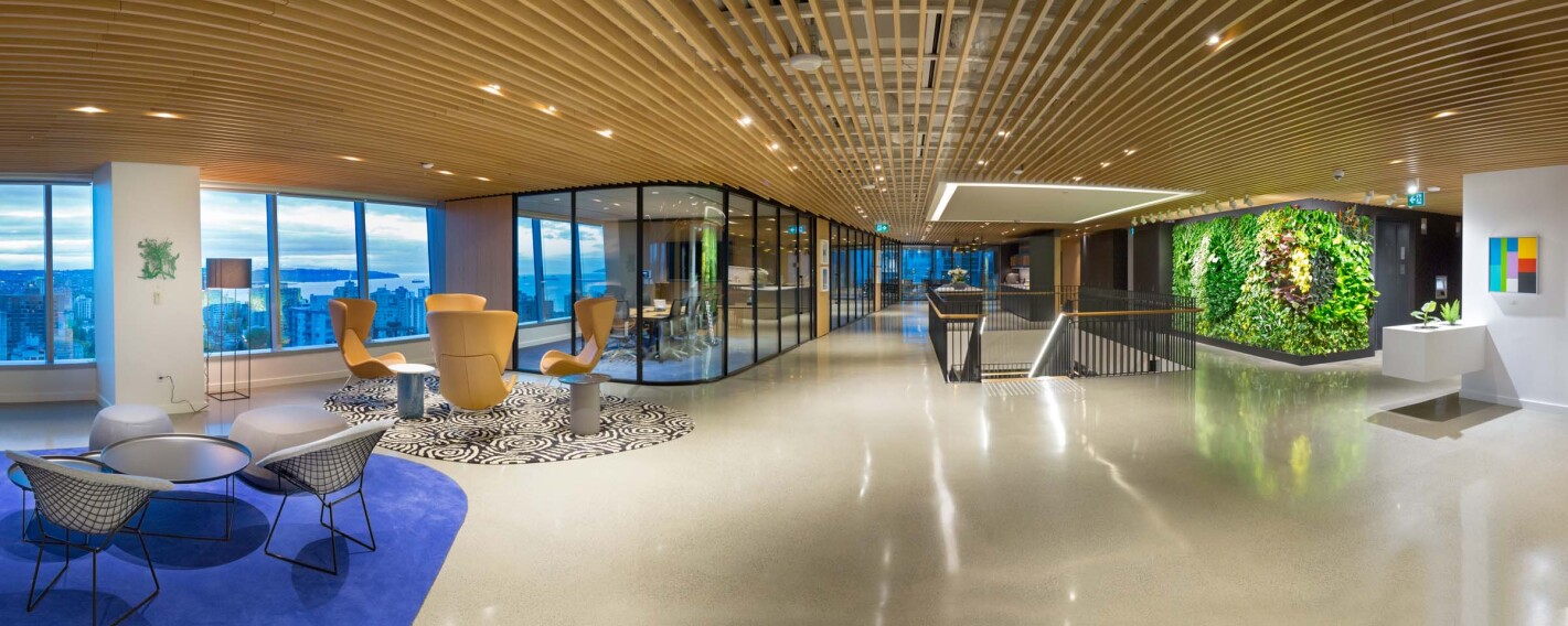 Turner provided preconstruction and construction management services on this project which included the top three floors of the 745 Thurlow Tower. The new office space revolutionized the firm’s work culture with its modern layout. The top client-facing floor included 12 client meetings rooms including video-conferencing rooms, presentation rooms, on-line meeting rooms and one divisible training/conference room inclusive of projection capabilities, blackout blinds and an operable wall. This floor also featured a reception area, a servery and a catering kitchen. Noteworthy features also included a green wall and an interconnecting staircase that wrapped around the core. The lower two floors contained ninety-two independently supported and serviced glass office pods interspersed with workstations, collaborative areas, internal meeting rooms and staff cafes. The space also features an open-concept library mixed with collaborative seating spaces.