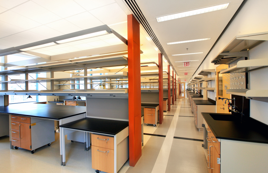 The scope of work includes selective demolition, new interior partitions, ceilings and floors, laboratory millwork, and MEP system upgrades. This renovation will add 12,000 sq. ft. of additional laboratory space to the Center, including seven new fume hood rooms, three temperature-controlled rooms, and a steam sterilizer.