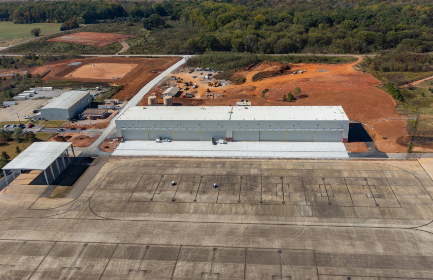 The Redstone Aircraft Hangar project was a 63,000-sq. ft. aviation-test, instrumentation, and integration aircraft hangar facility to support developmental flight-test activities. The project encompassed the construction of an aircraft hangar, administrative space, a hangar-access apron, an aircraft-parking apron, information systems, fire protection and alarm systems, intrusion-detection system connection, energy-monitoring control systems connection, sustainability and energy enhancement measures, and anti-terrorism/force protection measures.