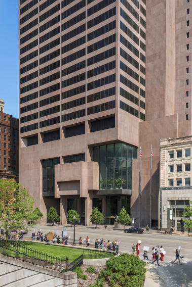 Originally built by Turner in 1974, the 41-story James A. Rhodes State Office Tower needed a complex modernization. There were significant challenges involved with the renovation - critical was to safely perform the construction among the 2,600 workers occupying the metropolitan high-rise. To mitigate potential schedule conflicts, the project team implemented a cadence of meetings with facility management representatives and trade contractors to forecast and align construction schedule activity along with the day-to-day operations of the state agency tenants. Other challenges involved building a protective canopy over the sidewalk to ensure pedestrian safety. The canopy skirted the building perimeter and served as a staging area for construction materials and tools. The scope of this multi-phased project included repair of more than 13,000 existing granite panels to eliminate future ‘spalling’, removal and replacement of 204 granite panels that had chipped/cracked with time, the addition of a vapor barrier to increase thermal performance, replacement of over 3,000 existing window units, replace 30 stories of existing curtainwall, resealing of the existing monumental glass, 100% removal and re-application of 28.5 miles of sealant around the granite panels.