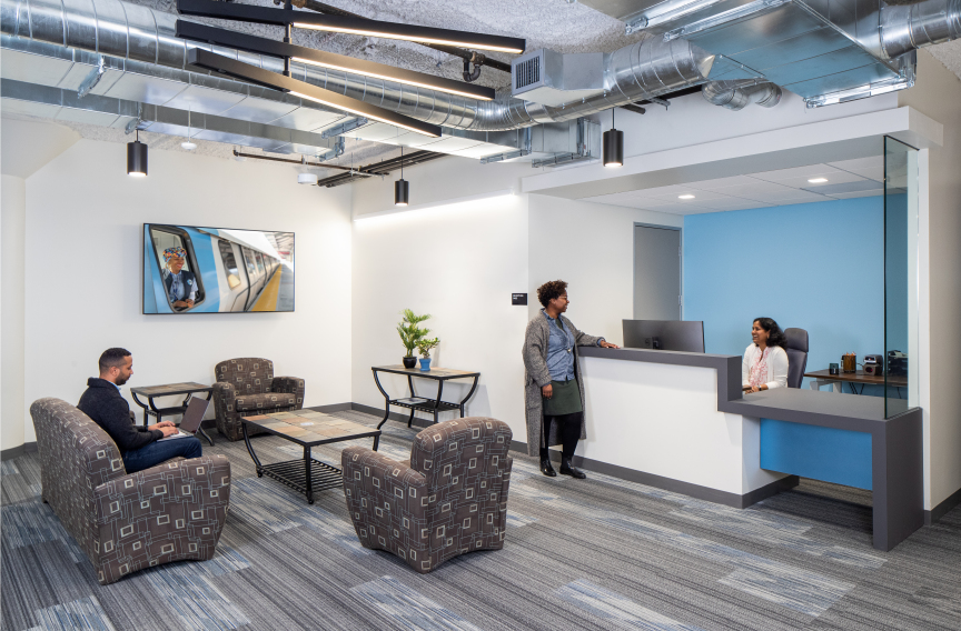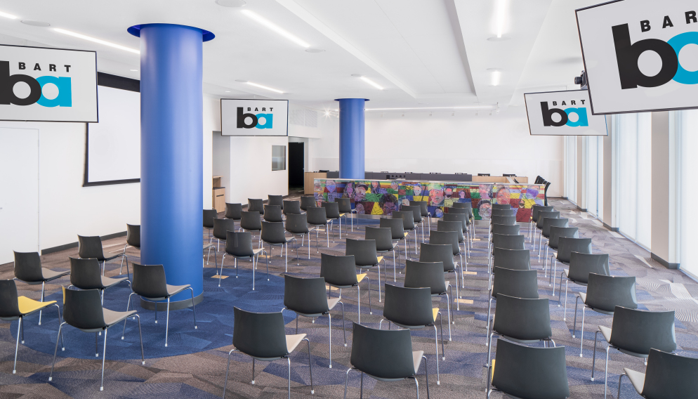 Within months, BART's headquarters in Oakland, California was transformed. The project consisted of a complete interior fit out of a ten-story building. The scope of work included a lobby on the ground floor with a BART boardroom and a street-facing public retail suite. The upper floors include seven typical open office floors, executive offices, conference and break area amenities, a security office, work rooms and employee access to a small rooftop deck. The project was developed through Progressive Design-build delivery and includes Target Value Delivery of programming, design and preconstruction activities. The project is LEED Gold Certified.