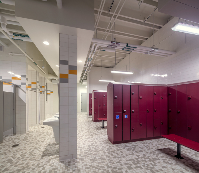 At Caryl E. Adams Elementary School, improvements included renovations to the main entrance, lobby, and office areas, along with a new two-classroom Universal Pre-Kindergarten (UPK) addition. Additional upgrades encompassed an expanded UPK playground, lighting and ceiling replacements, bathroom renovations, masonry repairs, and comprehensive MEP system enhancements. A major highlight was the full renovation and expansion of the pool facility, now equipped with six competition-ready lanes, a deeper diving well, new bleachers, scoreboard, sound system, locker rooms, and upgraded safety features.