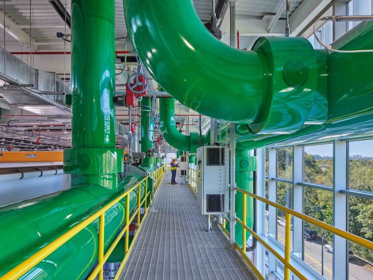 Through a joint venture between Turner and Mosites, this project includes the construction of a 15,000-ton chilled water plant along with distribution throughout the University of Pittsburgh’s campus. The chiller plant will be housed within a new steel and concrete structure with masonry and curtainwall façade. The chiller plant consists of space for four chillers with six cooling tower cells and the chilled water system is designed for variable primary pumping. The plant also includes two 3MW diesel generators for stand-by generation. The distribution includes underground chilled water supply and return piping and HDPE greywater piping for collection of roof drains from the campus. The collected greywater will be stored in one of two underground cisterns on the chiller plant site and used to supplement condenser water makeup.