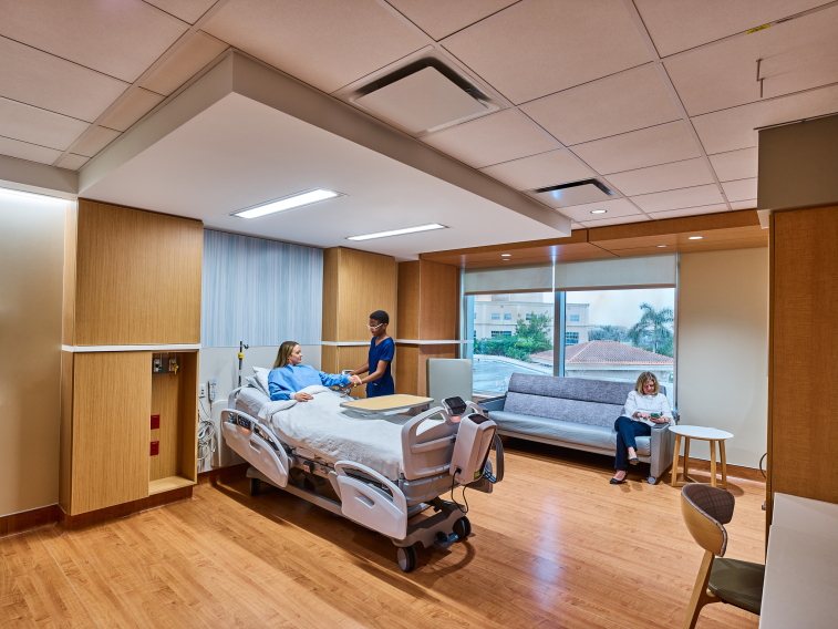 The design of the new tower mirrors the Mediterranean style aesthetic of the existing hospital and incorporates the same eco-friendly features of the rest of the hospital.